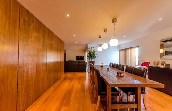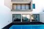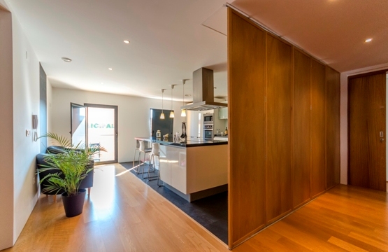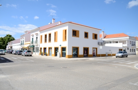 Situada numa zona de grande visibilidade e nevrálgica da vila, inseriu-se um edifício de habitação, comércio e serviços praticamente tradicional, com alguns rasgos de modernidade. Nas artérias principais os alçados são compostos por detalhes, sendo o bloco mais recuado o de maior usufruto do proprietário, totalmente rasgado por envidraçados, proporcionando uma maior cumplicidade com o espaço exterior definido. Esta edificação de 2 pisos + piscina, no centro da Vila, proporciona através da modelação do volume, uma intimidade e boa qualidade de vida, já que resguarda os moradores dos incómodos causados pela azáfama do comércio envolvente.