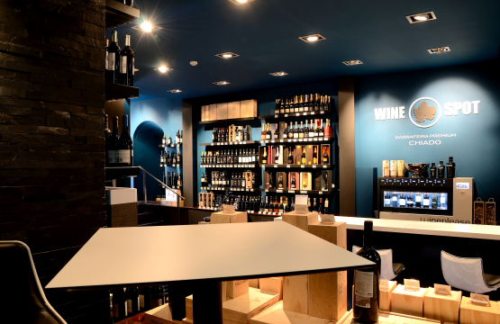 Inserida num edifício antigo, na zona do Chiado, o conceito principal do projecto passou pelo restauro, reorganização e revitalização da fracção. Com ideias previamente definidas pelo proprietário e tendo em conta a disposição em cotas diferentes do próprio espaço, facilmente se estabeleceu uma imagem de marca. Das cores escuras contrastando com as volumetrias/rotulagens de cada garrafa, pontuadas por pontos de luz e do mobiliário adequado ao conforto dos dias de hoje, acabou por resultar num “Spot” indicado para se poder degustar.