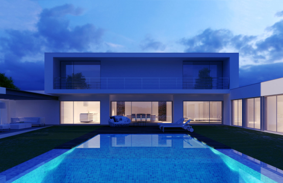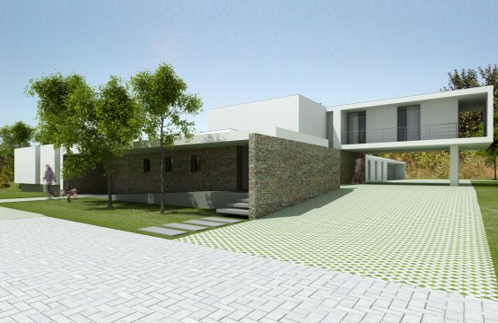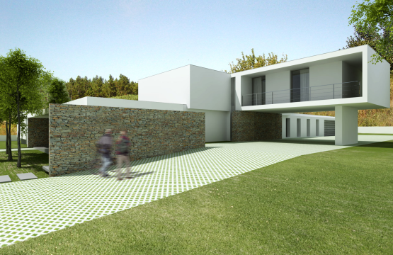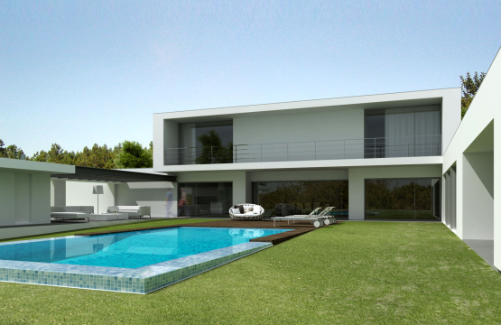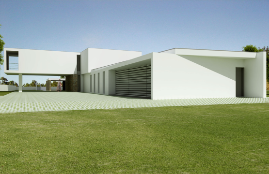 Trata-se de uma moradia de 2 pisos em que o volume superior assenta perpendicularmente sobre outro em L. No entanto, pelo exterior, a zona de lazer e o anexo acabam por fechar e envolver a piscina como peça fundamental da orientação das zona sociais e privativas da moradia. Linhas actuais definem a composição, usando-se pequenos detalhes ao nível dos arranjos exteriores, que fazem toda a diferença.